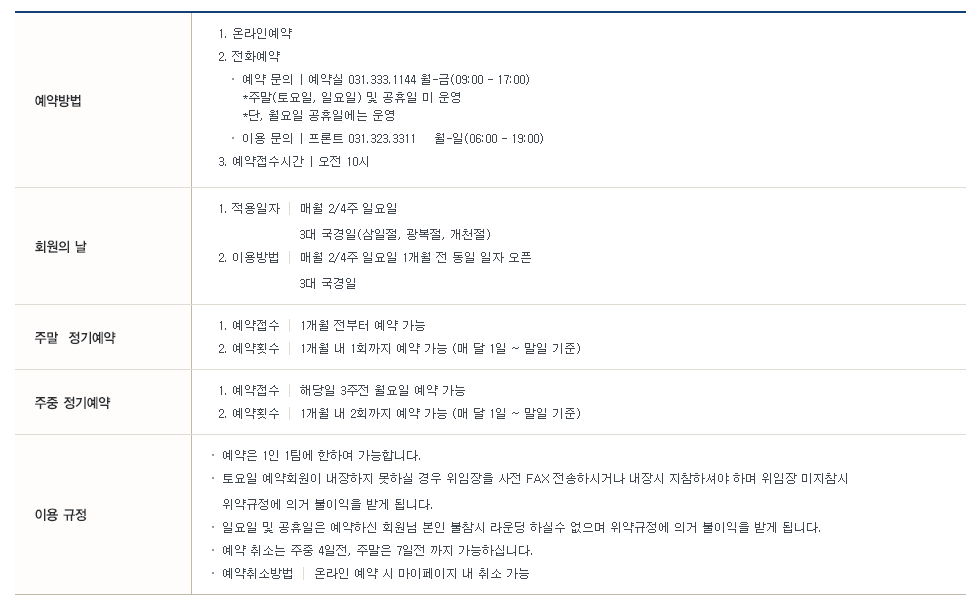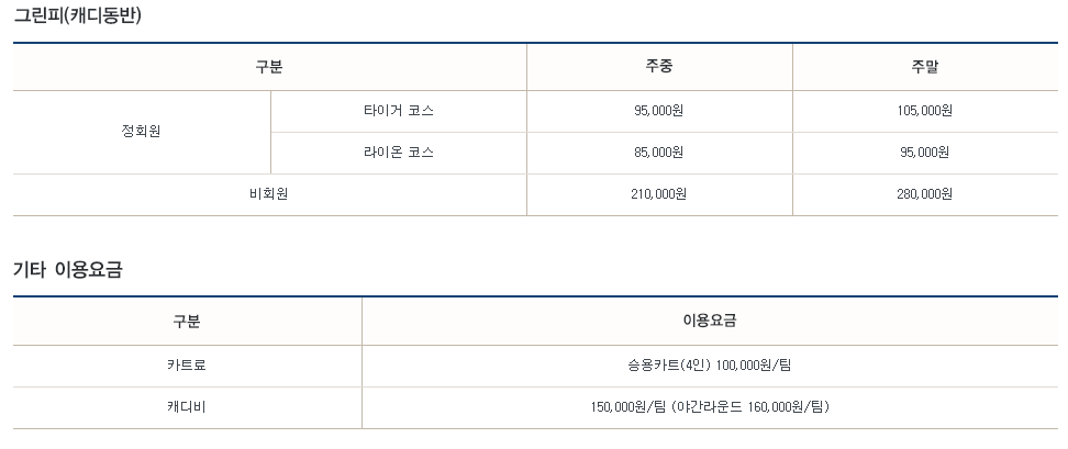용인플라자cc 이용요금 및 예약 안내