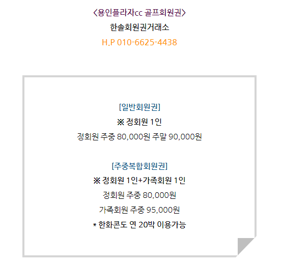 용인플라자cc회원권은 일반회원권,