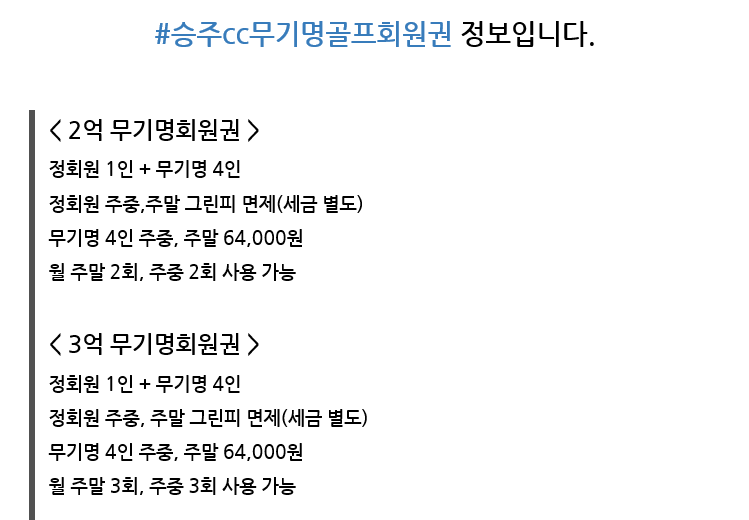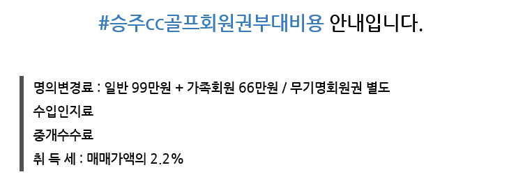 무기명회원권/1억원 이상 승주cc 4인 특별무기명 골프회원권 매물안내 알 수 없는 사용자 작성함 2019. 3. 29. 11:12 페이스북에 공유 카카오스토리에 공유 네이버에 공유 트위터에 공유 구글플러스에 공유 + 승주cc 4억 무기명회원권 법인 매물 매매금액 : 7억5천만원 공유하기 게시글 관리 한솔회원권거래소 '무기명회원권/1억원 이상 ' 다른 게시물 보기 더보기 2019.04.22 가평 크리스탈밸리cc 주중무기명회원권 매매시세 (2019.04.22.) 안내 2019.04.15 한솔 오크힐스cc 동반 무기명회원권 입회안내 2019.03.22 시그너스cc 무기명회원권 분양 안내 - 충주무기명골프장 2019.03.20 센추리21cc무기명골프장회원권 매매가격 구입시세 안내