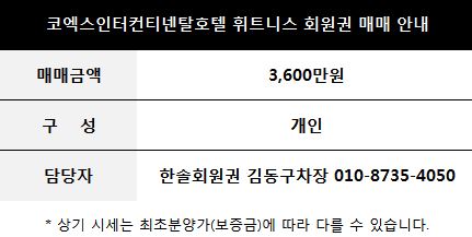 코엑스인터컨티넨탈호텔 휘트니스 회원권 안내