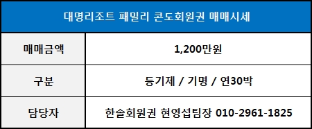 ◀ 대명패밀리 콘도회원권 매매가격 ▶