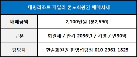 ◀ 대명패밀리 콘도회원권 매매가격 ▶