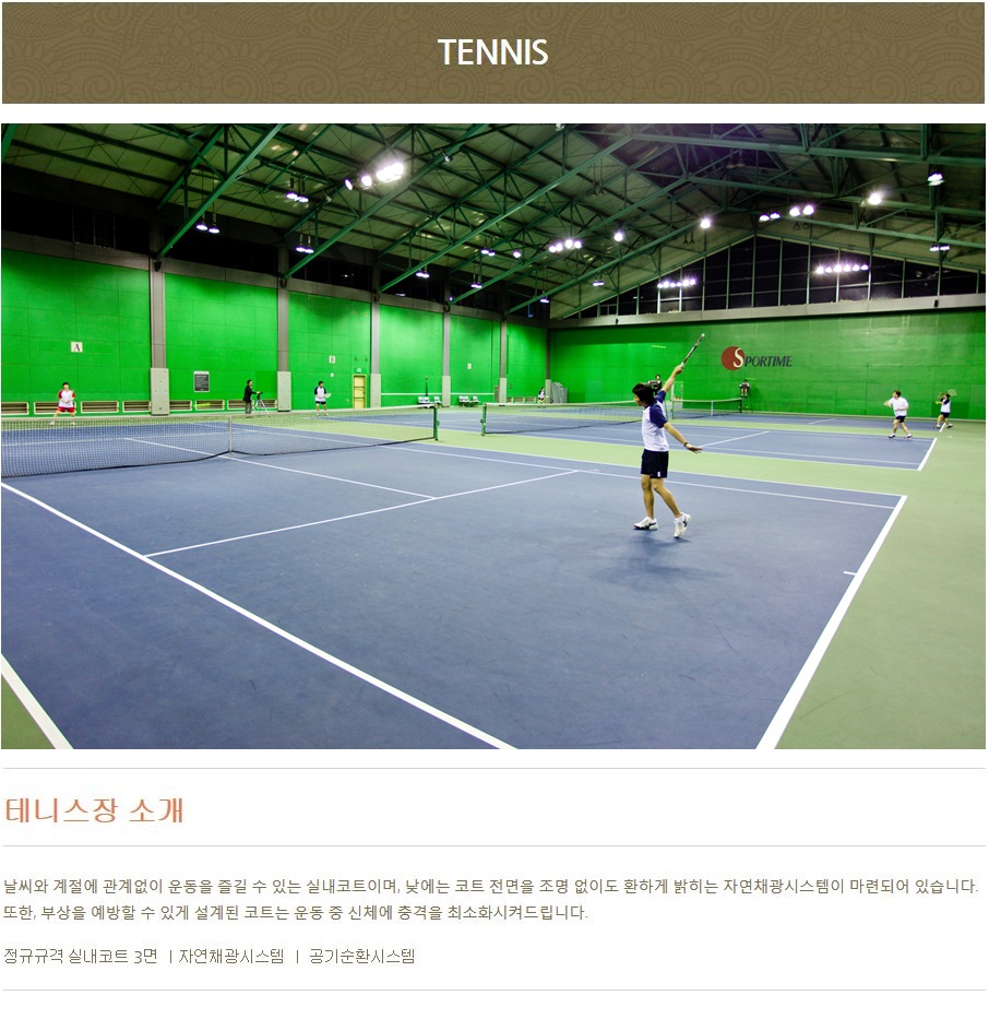 →주요시설 : 골프장, 수영장, 체련장, 테니스장, 라켓볼장, 사우나, 온천 등