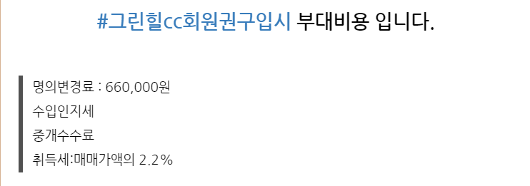 그린힐cc 골프장회원권 혜택 안내