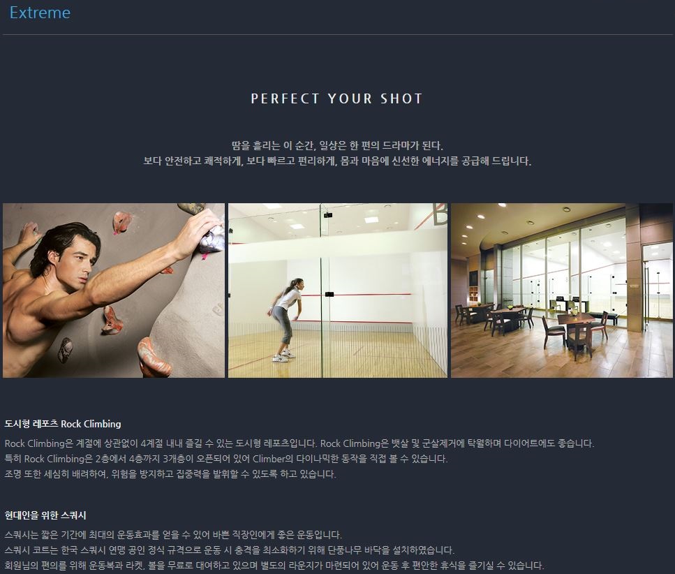 →주요시설 : 실내수영장, 체련장, 스쿼시, 골프연습장, 스파 등
