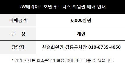 JW메리어트호텔 휘트니스 회원권 안내
