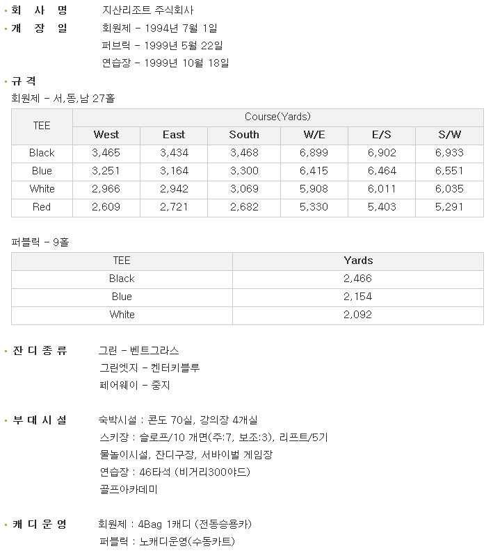지산cc 골프장 정보 안내 입니다.
