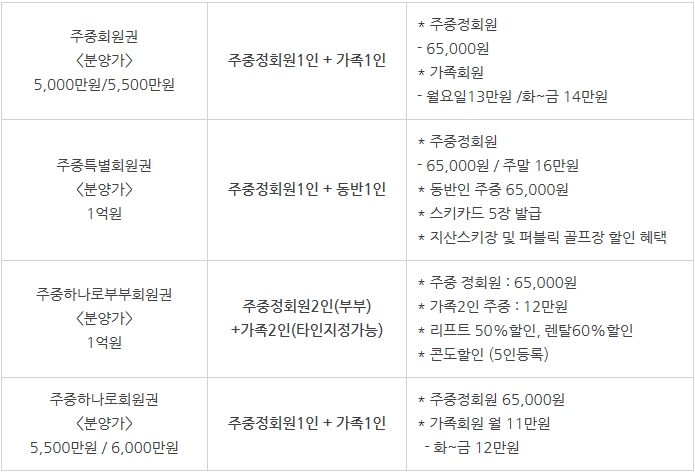 주중남자회원권 : 5,500만원 - 6,000만원