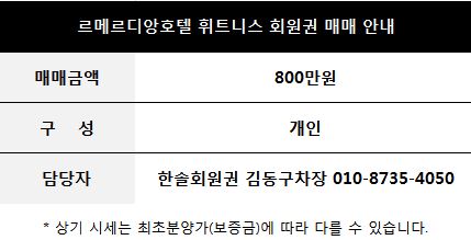 르메르디앙호텔 휘트니스 회원권과 연회비 안내