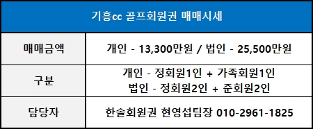 기흥cc 골프회원권 추천매물 매매시세 (2019.04.16.) 안내