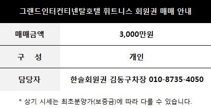그랜드인터컨티넨탈 호텔 휘트니스 회원권과 연회비 안내