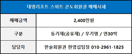◀ 대명리조트 콘도회원권 매매시세 ▶
