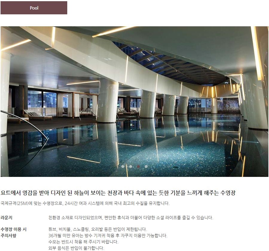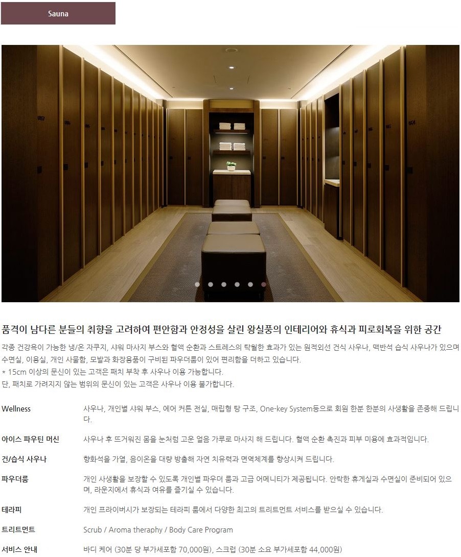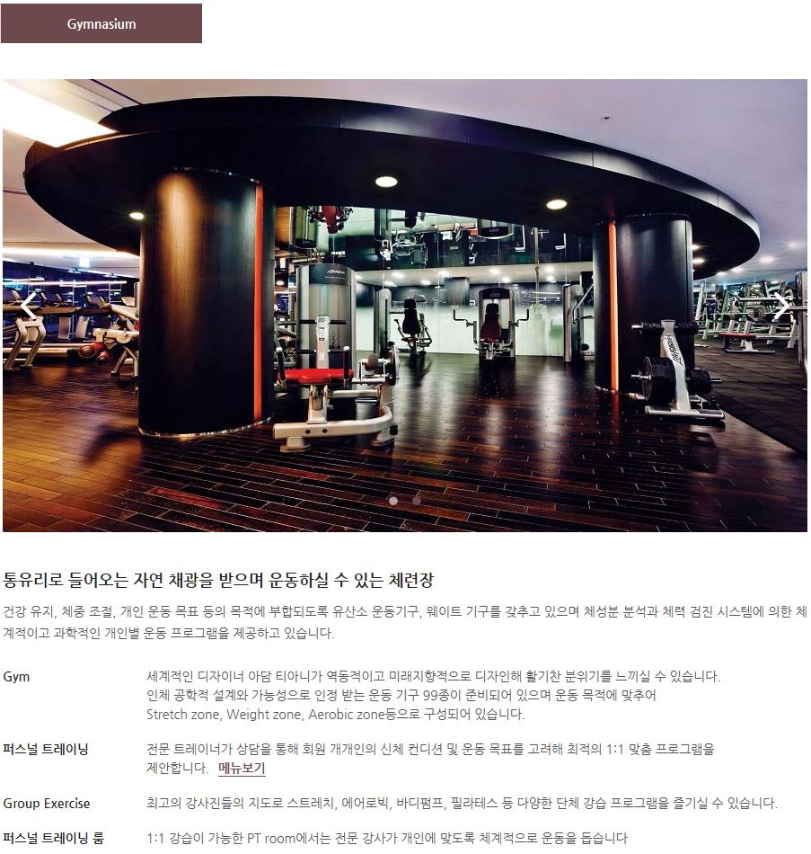 →주요시설 : 체련장, 실내수영장, 사우나, 파우더룸 등