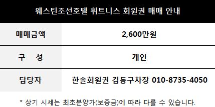 웨스틴조선 호텔 휘트니스 회원권과 연회비 안내