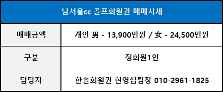 ◀ 남서울cc 골프회원권 매매가격 ▶