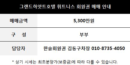 그랜드하얏트호텔 휘트니스 회원권과 연회비 안내
