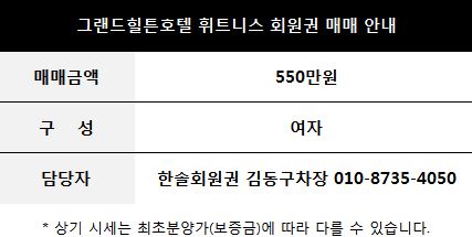 그랜드힐튼호텔 휘트니스 회원권과 연회비 안내