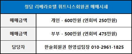 청담 리베라호텔 휘트니스회원권 추천매물 매매시세 안내