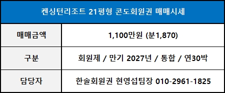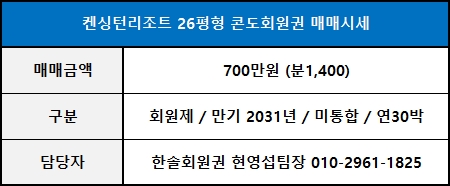 ◀ 켄싱턴콘도회원권 매매가격 ▶
