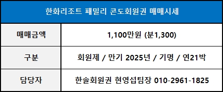 ◀ 한화리조트회원권 매매가격 ▶