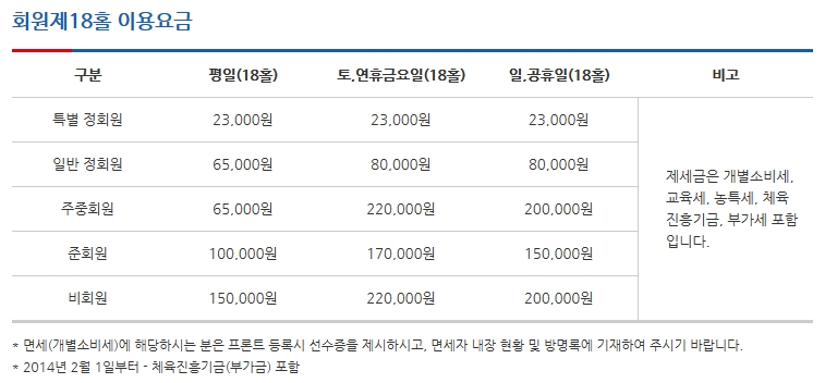 ▣ 금강cc 골프그린피 및 이용요금 안내 ▣