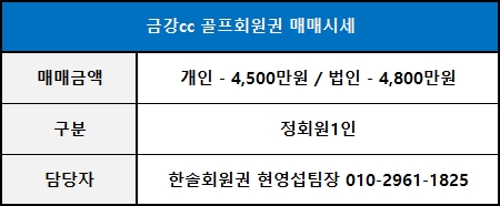 ◀ 금강cc골프회원권 매매가격 ▶