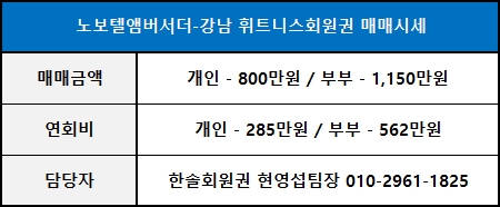노보텔 앰버서더 강남 휘트니스회원권 매매시세 안내