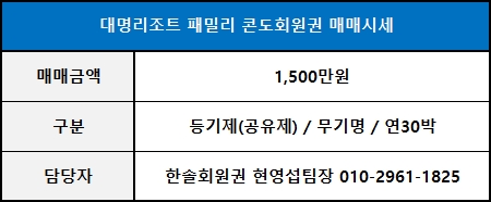 대명리조트 패밀리 매매시세 (2019.06.19.) 안내