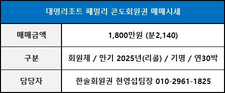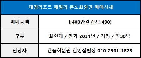 ◀ 대명리조트회원권 매매가격 ▶