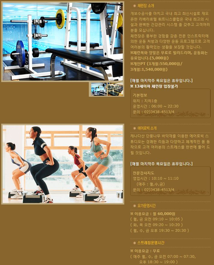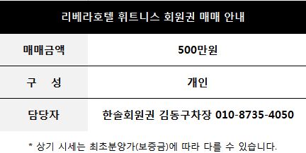 리베라호텔 휘트니스 회원권 혜택과 연회비 안내입니다.