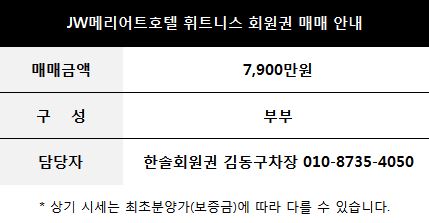 JW메리어트호텔 휘트니스 회원권 혜택과 연회비 안내입니다.
