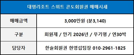 ◀ 대명콘도 스위트 매매가격 ▶