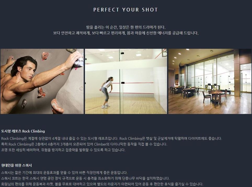 - 주요시설 : 체련장, 실내 수영장, 스쿼시, 골프 연습장, 스파 등