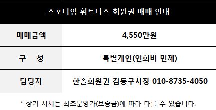 스포타임 휘트니스 회원권 혜택과 연회비 안내입니다.