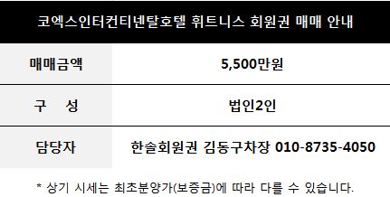 코엑스인터컨티넨탈호텔 휘트니스 회원권 혜택과 연회비 안내 입니다.