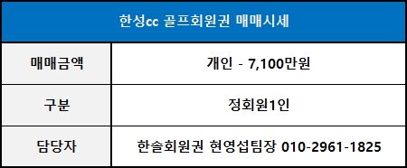 ◀ 한성cc회원권 매매가격 ▶