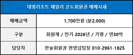 대명리조트회원권 패밀리 매매시세 (2019.07.28.) 안내