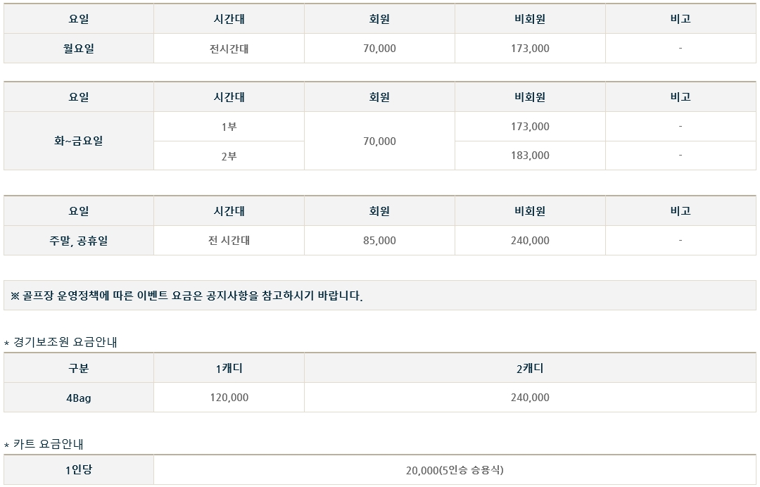 ▣ 수원cc 골프그린피 및 이용요금 안내 ▣