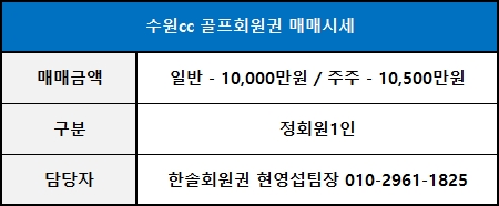 수원cc 회원권 골프회원권 매매시세 (2019.08.06.) 안내