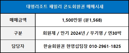 ◀ 대명콘도회원권 매매가격 ▶