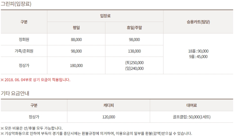 ▣ 덕평cc 골프그린피 및 이용요금 안내 ▣