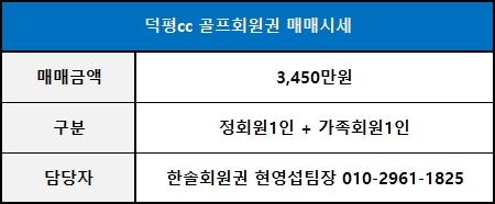 * 최근 덕평cc가 호반건설에 인수된 후, 회원권 매매시세의 상승이 있었습니다.