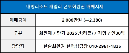 ◀ 대명리조트 패밀리 매매가격 ▶