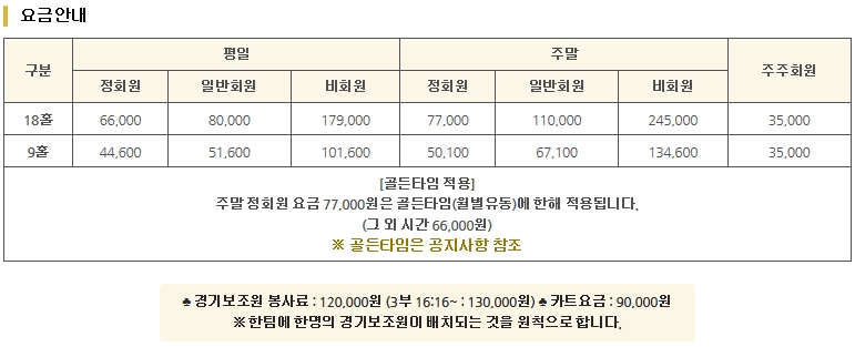 ▣ 골드cc 골프예약 및 이용요금 안내 ▣