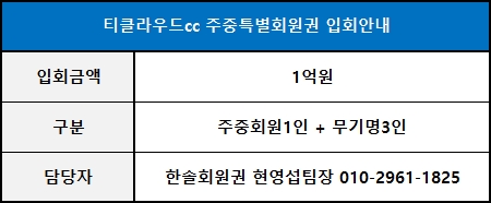 ■ 티클라우드cc 주중무기명회원권 입회안내 ■