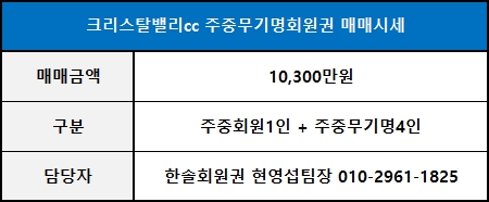 ■ 크리스탈밸리cc 주중무기명 급매물 안내 ■