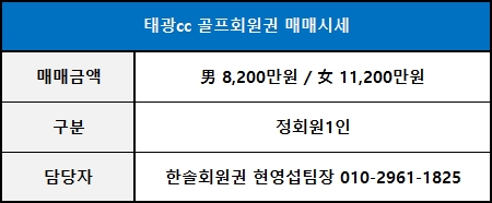 ※ 태광cc 주중회원권은 시중거래가 되지않습니다.