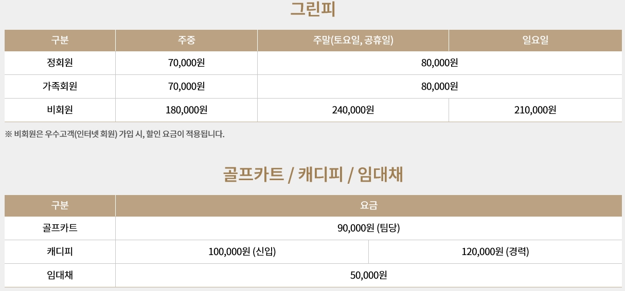 ▣ 라데나cc 골프 그린피 및 이용요금 안내 ▣