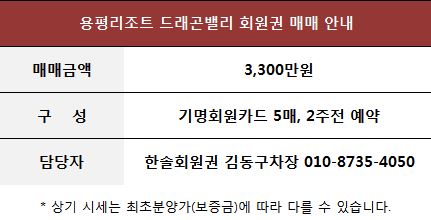 ◆용평 드래곤밸리호텔 회원권 안내◆