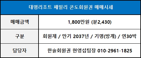 대명리조트 패밀리 콘도회원권 매매시세 (2019.11.04.) 안내